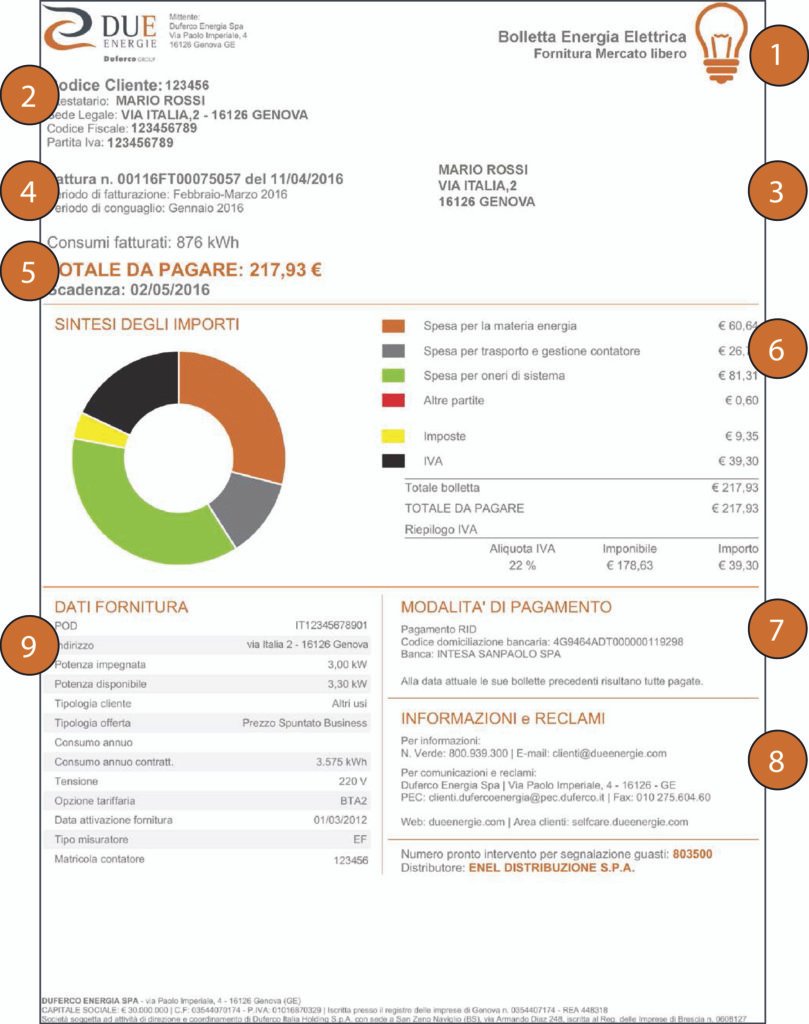 9. Quest’area contiene i dati fornitura che comprendono le informazioni relative al contratto e i dati tecnici relativi al punto di prelievo dell’energia, il così detto POD.